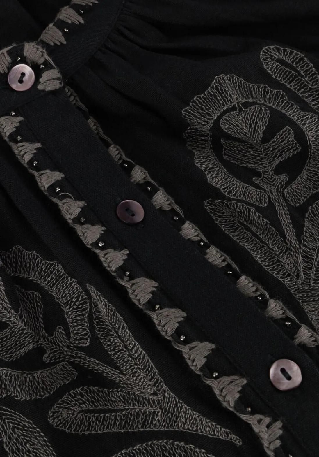 Maak kennis met de EGLANTINE BLOUSE van ANTIK BATIK. Deze zwarte blouse, gemaakt van hoogwaardig katoen, is een must-have voor elke garderobe. Perfect voor een dag op kantoor of een avondje uit met vriendinnen. Combineer met een strakke jeans voor een casual look of draag met een elegante rok voor een chique uitstraling. De subtiele details en het comfortabele materiaal maken deze blouse een veelzijdige keuze voor elke gelegenheid. Voeg een paar stijlvolle accessoires toe en je bent klaar om te stralen.