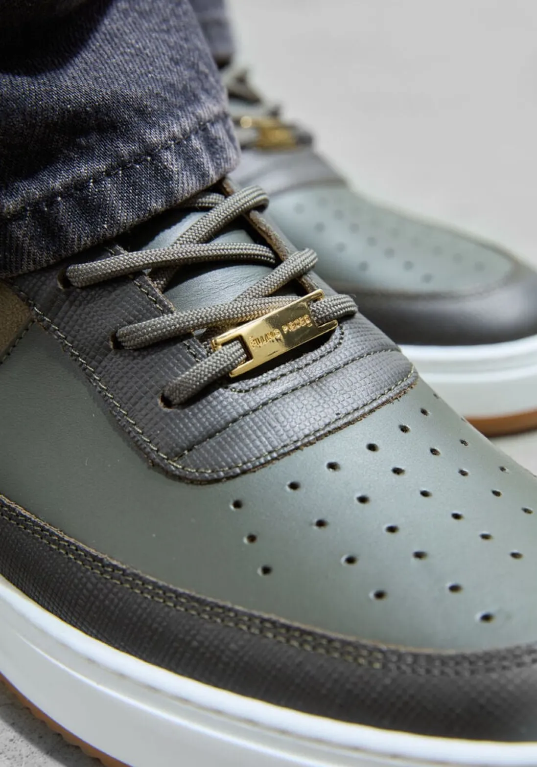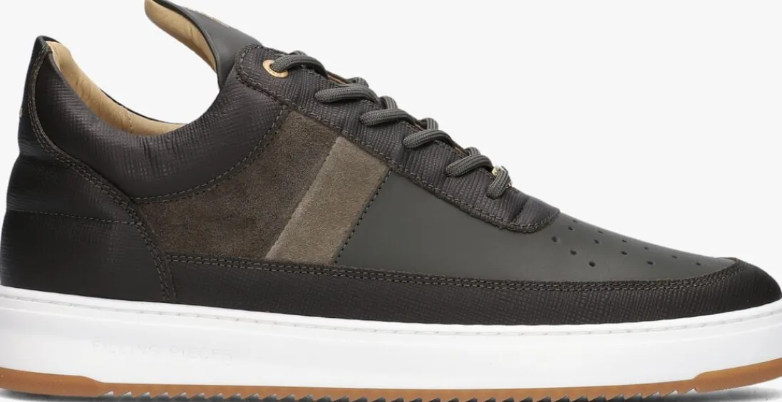 Stoere groene sneakers van FILLING PIECES voor heren. Deze sneakers zijn gemaakt van groen kleurig leer en hebben een ronde neus met perforaties en een vetersluiting. De goudkleurige details en de suède groene strepen geven de sneaker een toffe touch. Het uitneembare voetbed en de binnenkant van leer zorgen voor optimaal comfort. De rubberen zool zorgt voor een goede grip. FILLING PIECES staat bekend om zijn unieke en trendy ontwerpen. Perfect voor een casual en stijlvolle look.