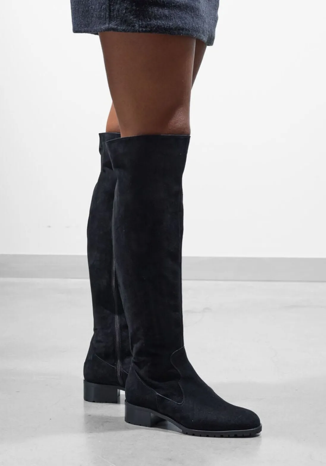 Lange laars voor dames van het merk Marcos Nalini. Deze laars met ronde neus is uitgevoerd in zwart suède. Deze laars loopt recht en heeft een rits aan de achterzijde van de schacht. Tevens heeft de schacht extra stretch De binnenkant is uitgevoerd in leer en een stevig contrefort draagt bij aan het loopgemak. De loopzool is van rubber en heeft een medium profiel. De hak meet circa 3 cm.