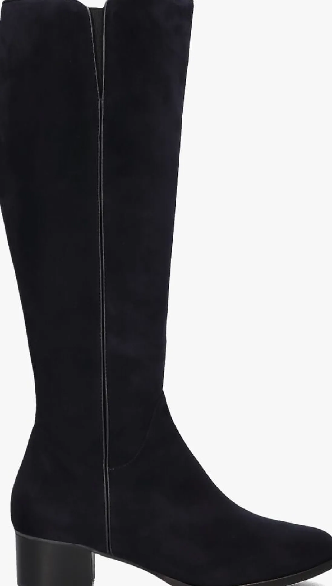 Hoge suéde laars voor dames van het merk Marcos Nalini. Deze hoge laars met halfronde neus is uitgevoerd in blauw suéde. De binnenkant van de schacht bevat een rits om het aan- en uittrekken te versoepelen. De binnenzijde is uitgevoerd in leer en een stevig contrefort draagt bij aan het loopgemak. De rubberen loopzool heeft een medium profiel en de hak meet circa 4 cm.