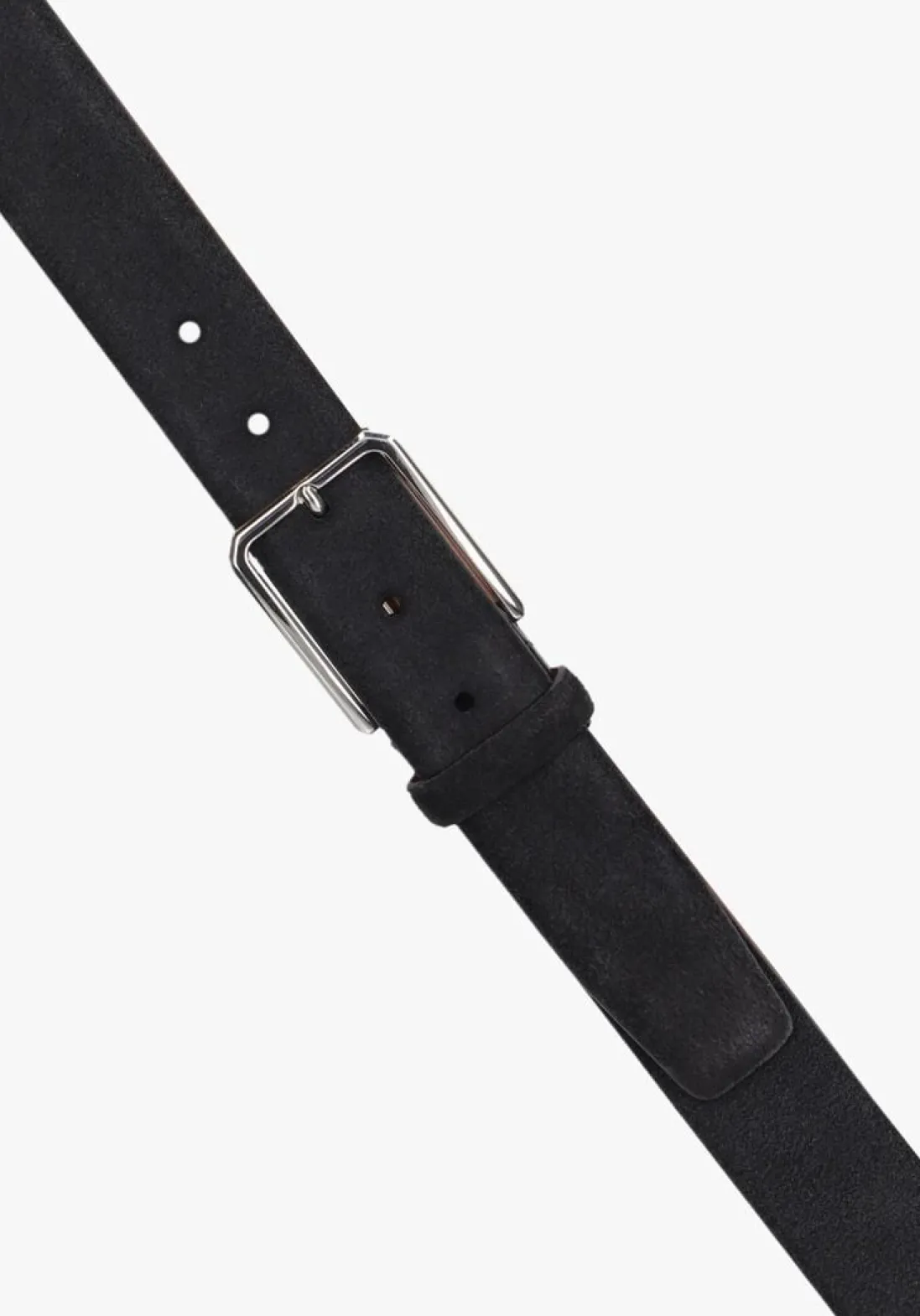 Een ceintuur met een breedte van 3,5 cm past (nagenoeg) in iedere pantalon met smalle lussen. Antraciet suède ceintuur voor heren van Santoni. Deze riem is uitgevoerd in antraciet suède met een zilverkleurige gesp en een cognackleurig lederen binnenvoering.