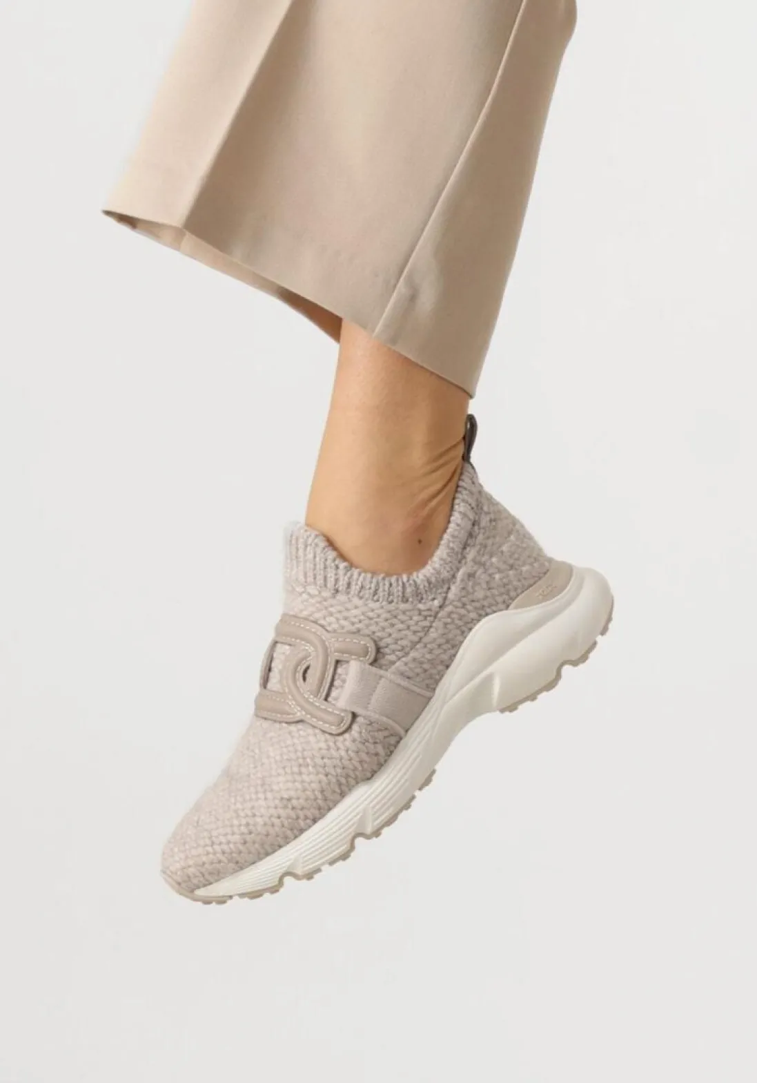 Ontdek de elegante beige lage sneakers van TOD’S, model XXW54C0IP32. Deze stijlvolle sneakers zijn perfect voor dames die comfort en stijl willen combineren. De buitenkant is gemaakt van hoogwaardig textiel, terwijl de binnenkant een luxe mix van textiel en leer biedt. De sneaker heeft elegant leren embleem en een handige leren aantreklus voor een snelle instap. De ronde neus zorgt voor een tijdloze uitstraling, en de stevige rubberen zool biedt optimale grip en duurzaamheid. TOD’S staat bekend om zijn vakmanschap en oog voor detail, waardoor elke schoen een meesterwerk is. Voeg een vleugje Italiaanse klasse toe aan je garderobe met deze prachtige sneakers.
