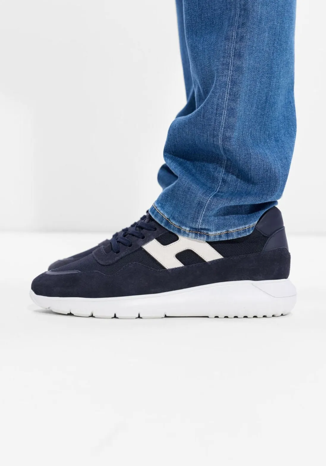 Ontdek de INTERACTIVE3 ALLACCIATO PELLE sneakers voor heren. Deze lage sneakers in stijlvol donkerblauw suède combineren comfort en mode moeiteloos. De ronde neus en normale zool zorgen voor een tijdloze uitstraling, terwijl de vetersluiting een klassieke touch toevoegt. Binnenin vind je een mix van textiel en leer, met een uitneembaar voetbed voor extra gemak. De rubberen zool biedt grip, perfect voor de herfst- en winterseizoenen. HOGAN staat bekend om zijn innovatieve ontwerpen, waardoor elke stap een genot wordt.