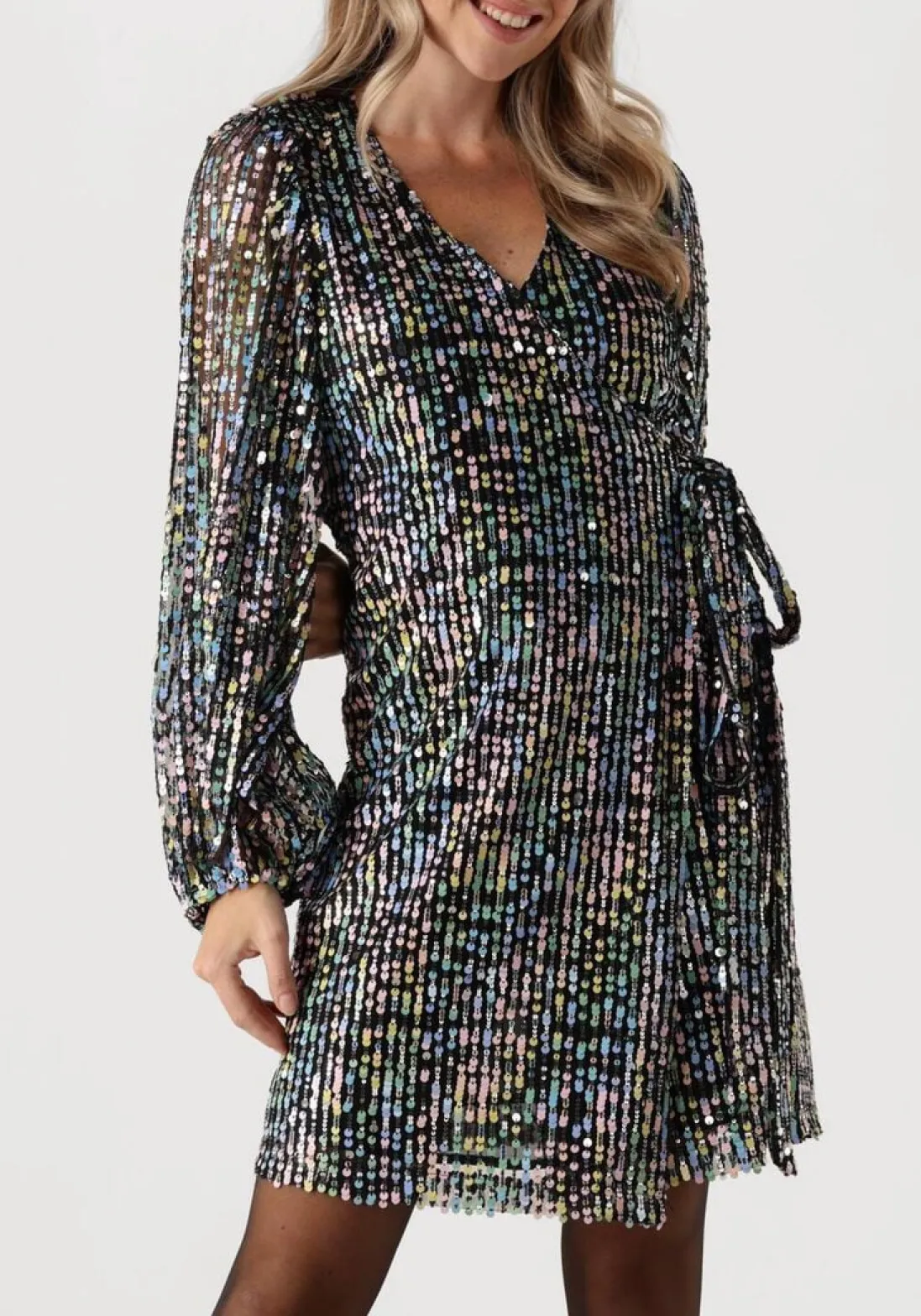 Ontdek de veelzijdigheid van de multi kleurige paillette mini jurk DAYINA van IBANA. Perfect voor een avondje uit of een stijlvolle brunch met vriendinnen. Deze jurk omarmt je silhouet en straalt elegantie uit. Combineer met een paar opvallende hakken voor een chique look of draag met een leren jasje voor een stoere twist. De tijdloze zwarte kleur maakt het eenvoudig om te mixen en matchen met je favoriete accessoires. Of je nu kiest voor minimalistisch of extravagant, met de DAYINA mini jurk ben je altijd in stijl. Een must-have voor elke dame die houdt van mode met een vleugje flair.
