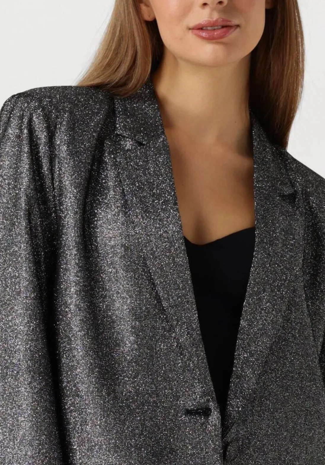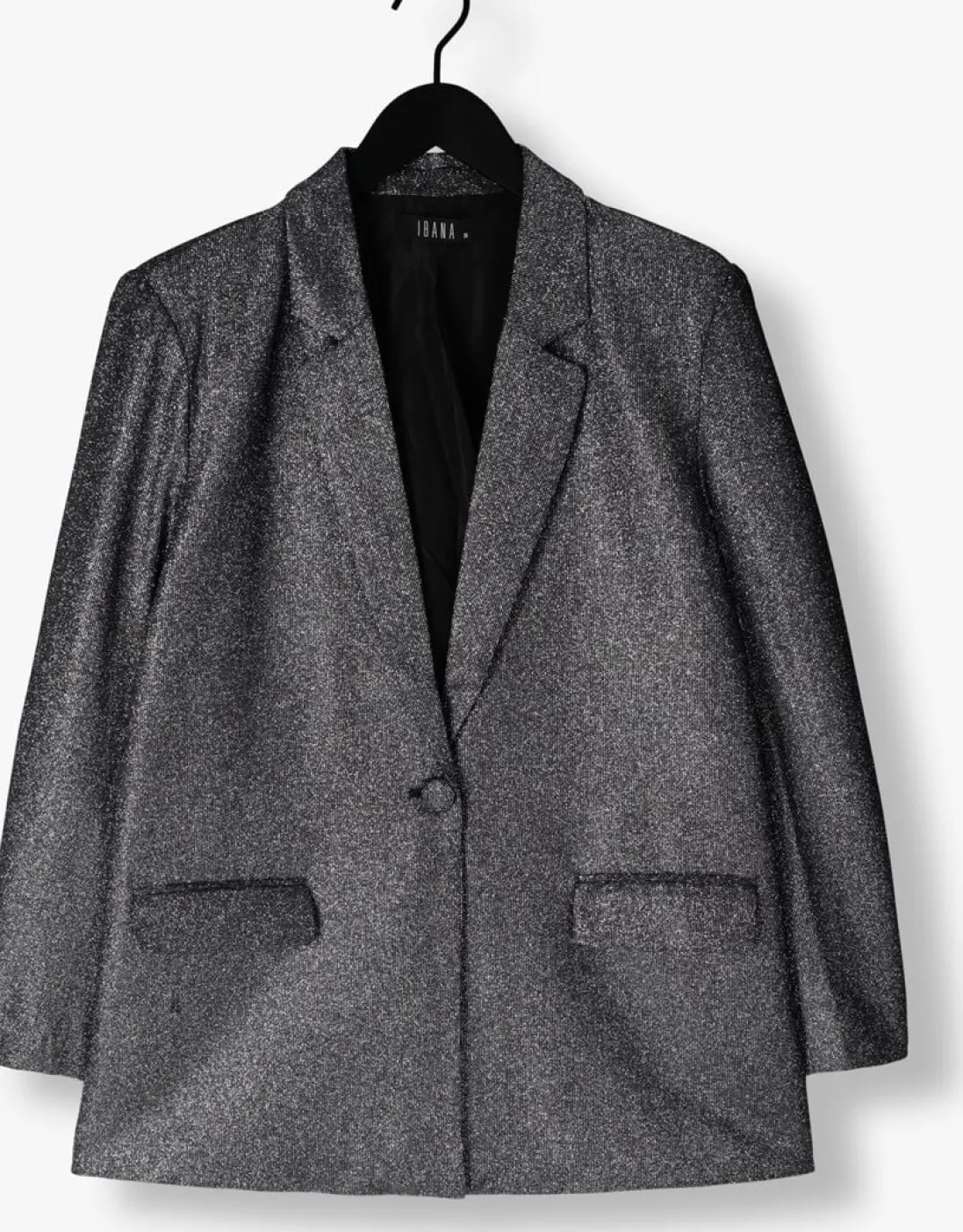 Stralend de avond in met de JOLSY blazer van IBANA. Deze zilverkleurige glitter eyecatcher, gemaakt van gerecycled polyester, is dé party essential voor dames die willen opvallen. Combineer met een zwarte skinny jeans voor een chique look of draag over een little black dress voor een glamoureuze uitstraling. De polyester binnenkant zorgt voor een comfortabele fit, zodat je moeiteloos kunt dansen of dineren. Met de JOLSY blazer ben je klaar voor elke feestelijke gelegenheid. Voeg een paar statement oorbellen toe en je bent helemaal klaar om te schitteren.