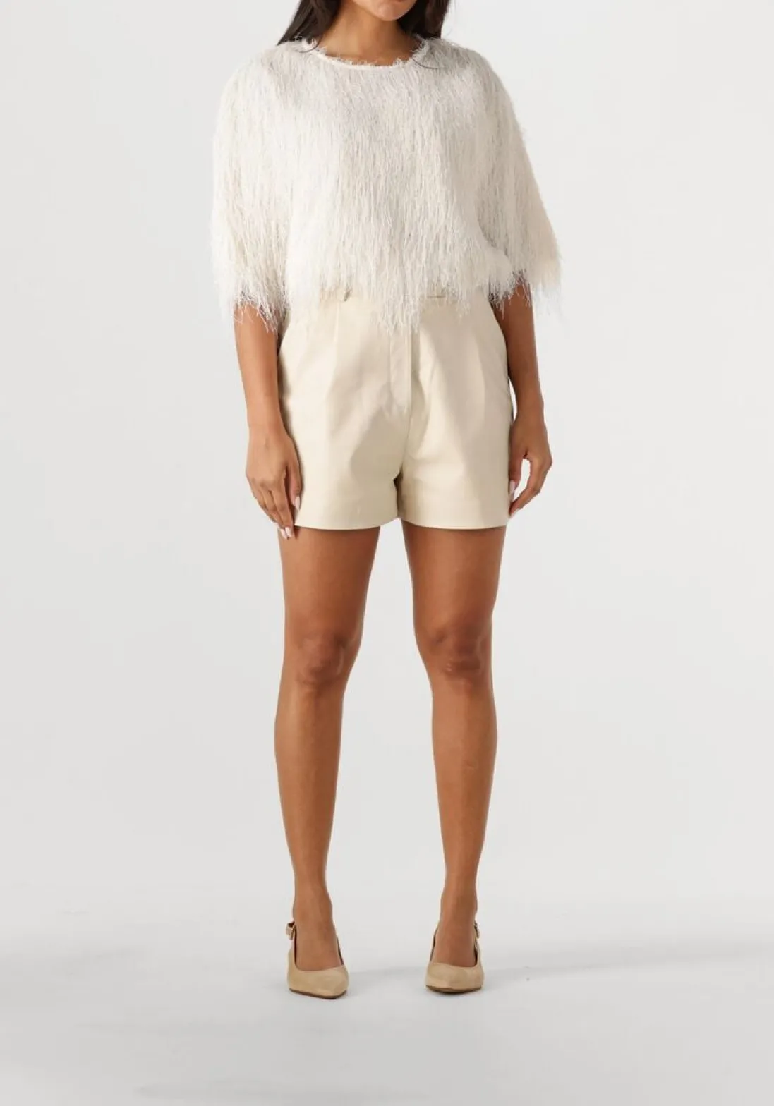 Ontdek de stijlvolle SICILY korte broek van IBANA, speciaal ontworpen voor dames die houden van comfort en elegantie. Deze ecru broek is gemaakt van hoogwaardig lamsleer. De binnenkant van polyester zorgt voor een zachte en luxe draagervaring. De lichte kleur en het minimalistische ontwerp maken het een veelzijdig kledingstuk dat moeiteloos te combineren is met je favoriete tops. IBANA staat bekend om zijn moderne en verfijnde ontwerpen, waarbij kwaliteit en stijl altijd voorop staan. Voeg een vleugje luxe toe aan je garderobe met deze prachtige creatie.