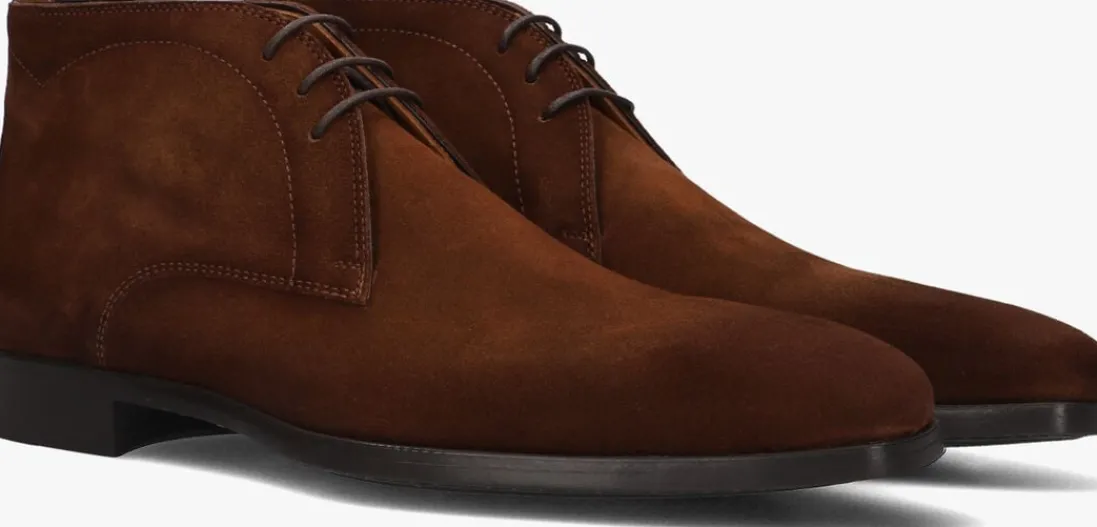 Gecombineerde suède veterboot voor heren van het Spaanse merk Magnanni, speciaal gemaakt voor Van den Assem. Deze hoge veterschoen is voorzien van een derby sluiting en dunne, gewaxte veters. De smalle belijning van de carré neus en het decoratieve stikselwerk rond de schacht maken dit ontwerp compleet. Het binnenwerk is volledig met leer gevoerd, een suède contrefort draagt bij aan extra loopcomfort. De rubberen loopzool heeft een fijn profiel en bevat een metalen merkembleem.