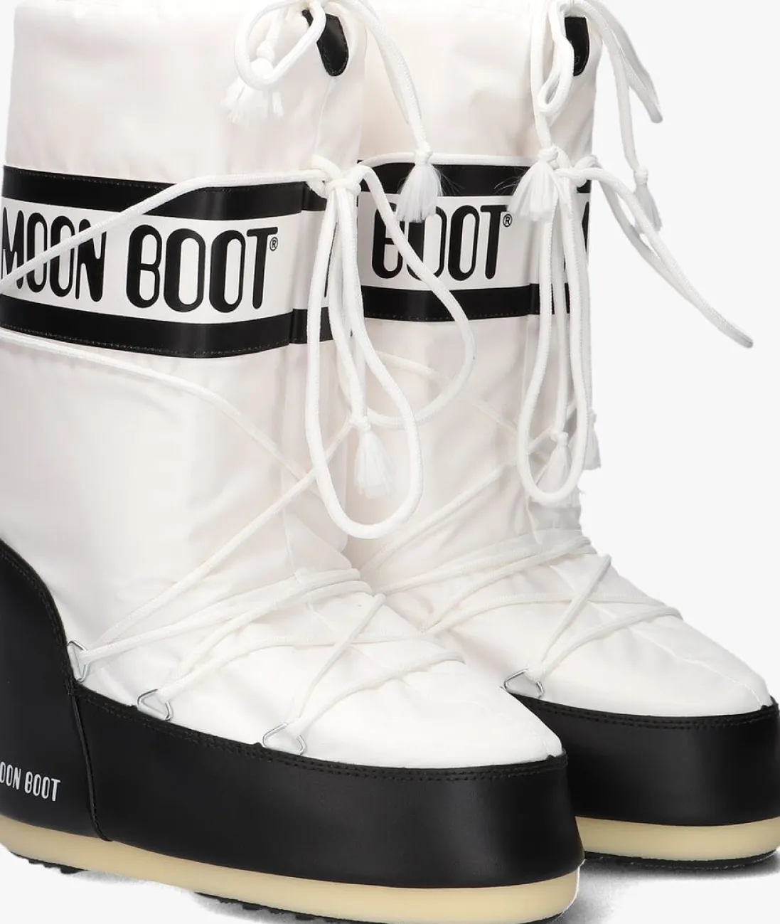 Maak kennis met de witte NYLON VETER SNOWBOOT van MOON BOOT. Deze stijlvolle snowboots zijn perfect voor de koude winterdagen. Gemaakt van hoogwaardig wit nylon, bieden ze optimale bescherming tegen sneeuw en kou. Het bovenwerk is ook afgewerkt met zwarte accenten en heeft een rand van leatherlook. De stevige rubberen zool zorgt voor extra grip op gladde ondergronden. Dankzij de trekkoordsluiting pas je de boots eenvoudig aan voor een perfecte fit. MOON BOOT staat bekend om zijn innovatieve en functionele ontwerpen, ideaal voor avontuurlijke dames die stijl en comfort waarderen.
